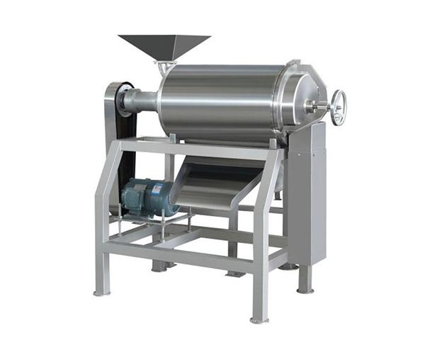 其主要工作原理是:在工作时,主轴由传动电机驱动旋转,将破碎的水果通过进料泵送入宅男视频破解版机进料口,使物料进入缓冲室并扩散到工作腔中,在主轴和叶片的旋转作用下,物料沿滚筒向出口端移动,运动轨迹呈螺旋运动,物料在叶片与筛网之间运动过程中被离心力擦除。果汁和肉类(已经形成果肉形状)从筛子孔通过一个果肉料斗进入两个宅男视频破解版进料口,通过两次宅男视频破解版来细化原料。将皮和种子从每个渣桶中排出,以达到自动分离的目的。同时,在宅男视频破解版机的圆柱体上设有稀释口,可通过该稀释口对物料进行稀释。从结构图上可以看出,该机器配备了两次宅男视频破解版,两次宅男视频破解版原理与同一宅男视频破解版原理相同,一次宅男视频破解版完成后,再送两次宅男视频破解版进行精炼。